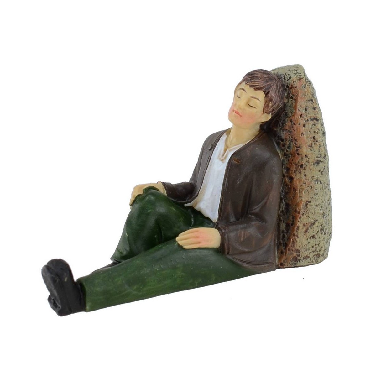 Dormiente seduto poggiato ad una pietra serie 8 cm in resina