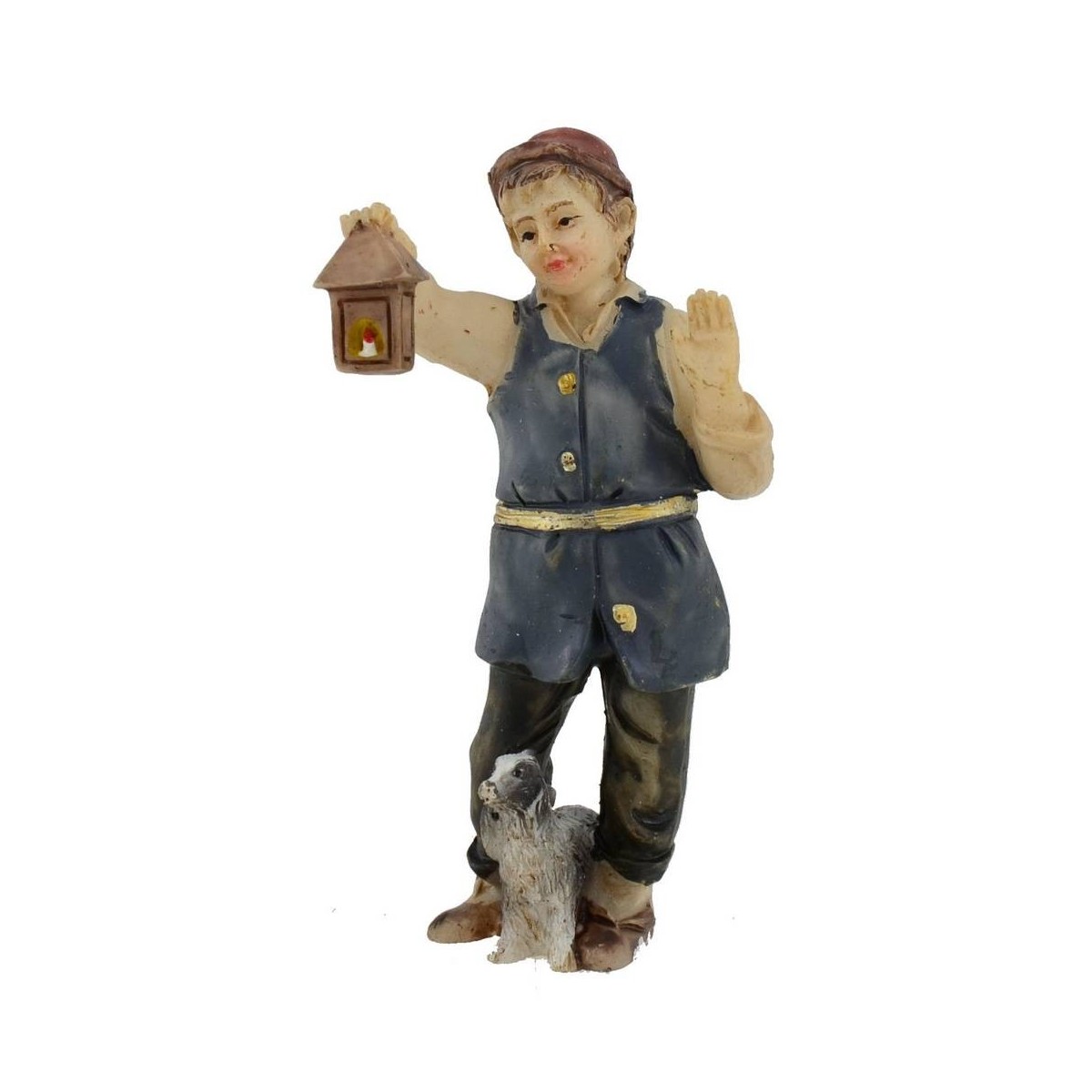Fanciullo con lanterna e cagnolino serie 9 cm in resina.
