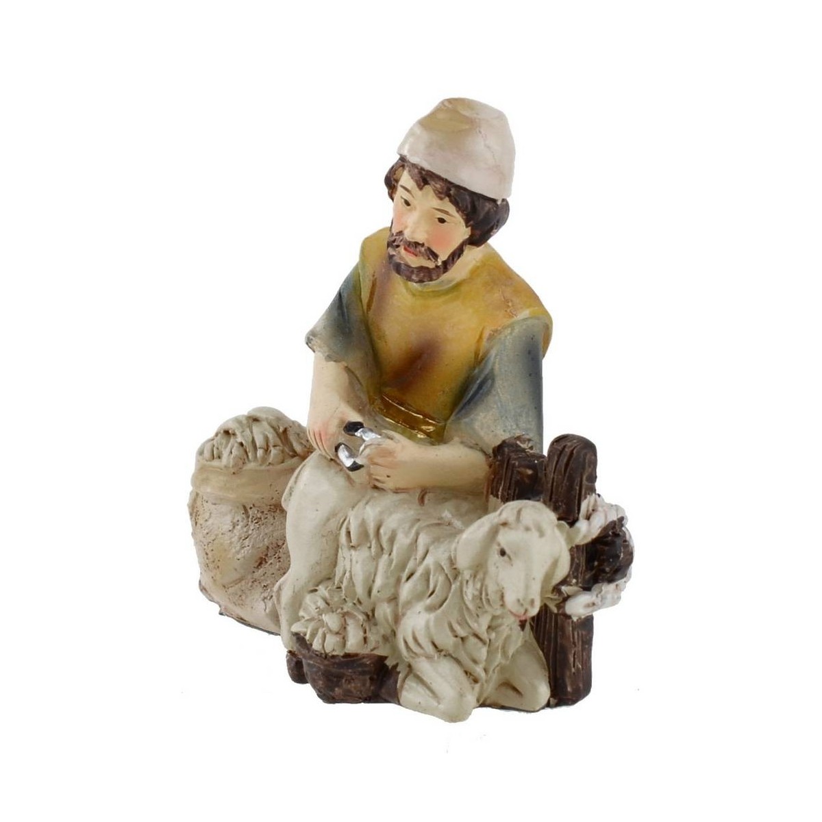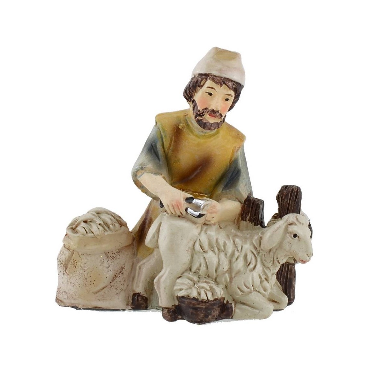 Tosatore di pecora con sacco di lana serie 8 cm in resina.