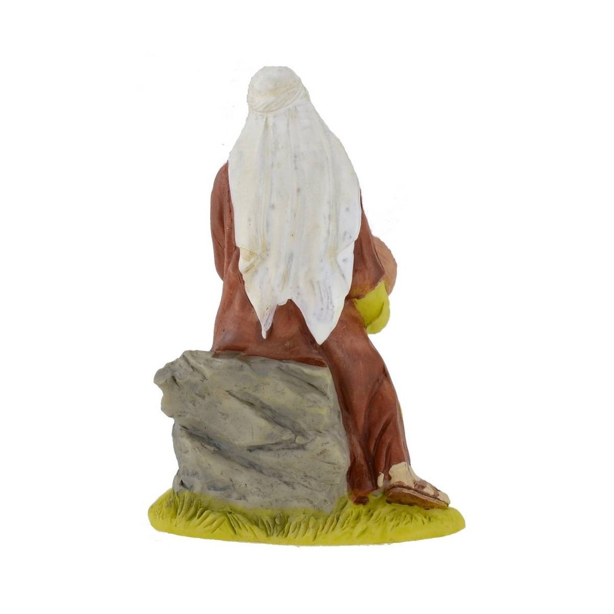 Contadina seduta su un muretto con cesto di grano, altezza 9 cm in resina.