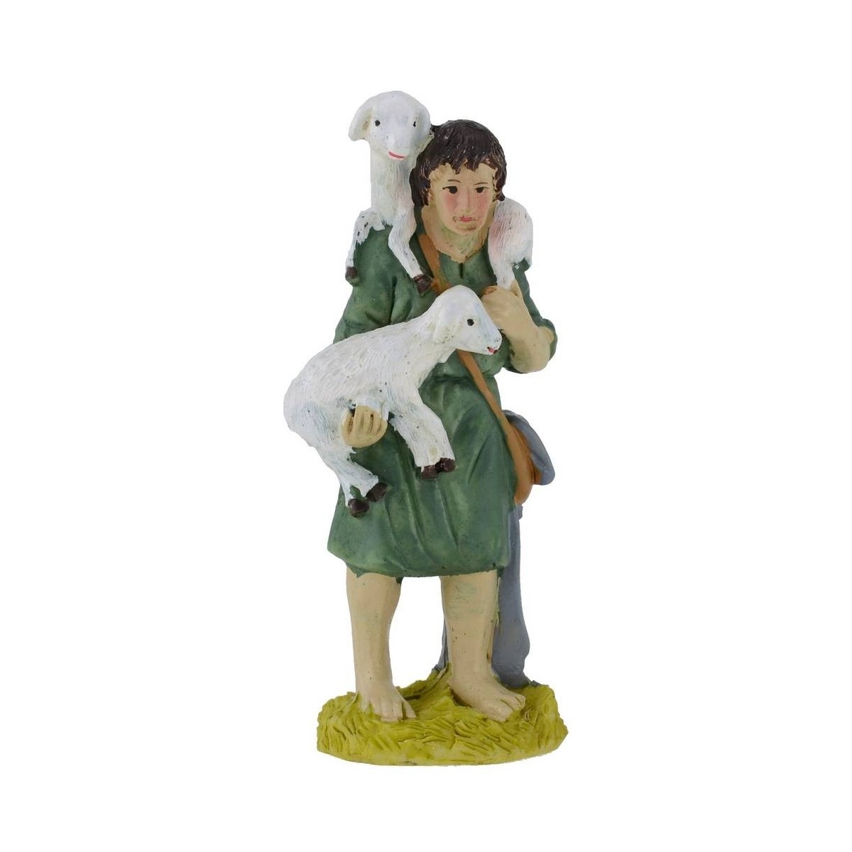 Pastore con pecore a spalle e in braccio altezza 9 cm in resina.