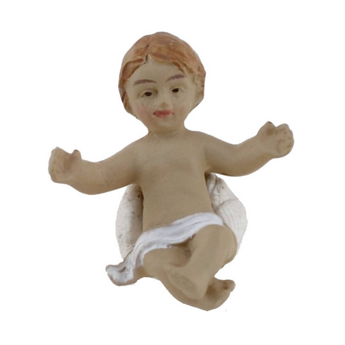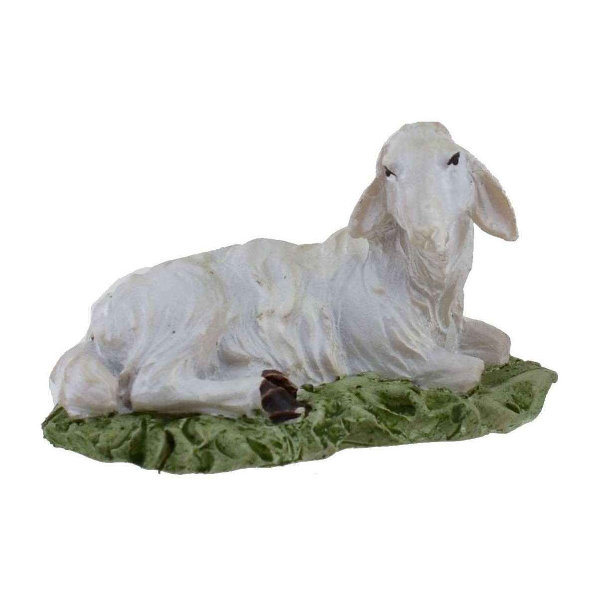 Set 5 statuine altezza 10 cm in resina per presepe composto dalla Natività (San Giuseppe, Maria sdraiata con Gesù Bambino, bue, asino e pecora).