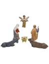 Natività composta da 6 soggetti: San Giuseppe e Maria inginocchiati, Gesù Bambino, Angelo, asino e bue. Le statue appartengono alla serie Landi Moranduzzo 8 cm.