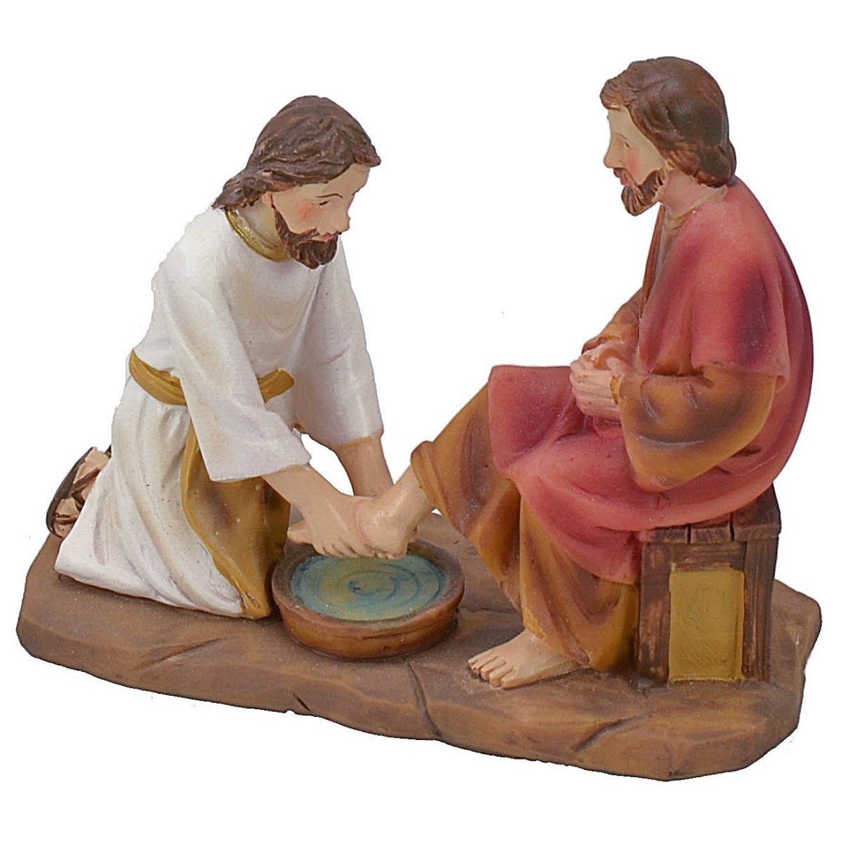 Set di figure per la rappresentazione della Lavanda dei piedi di Gesù. Le statue della medesima serie 9 cm hanno volti espressivi e ben rifiniti nei dettagli e sono realizzate interamente in resina. Il prodotto è ideale per la creazione di composizioni pasquali come diorami e presepi.