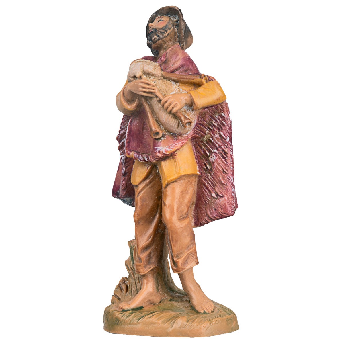 Zampognaro, serie 9,5 cm Fontanini, dipinto a mano. Le statue del presepe tradizionale Fontanini hanno volti espressivi e ben rifiniti nei dettagli.