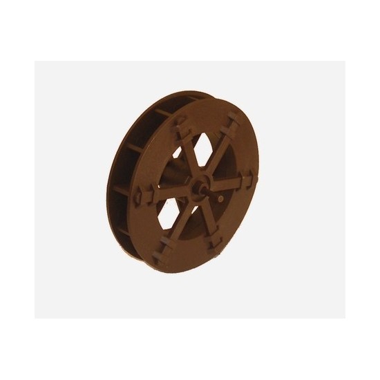 Ruota per mulino ad acqua, in plastica, con asse centrale. Per far funzionare e vedere il movimento della ruota è consigliato l'acquisto di una pompa e della vaschetta. Nei prodotti correlati, qui sotto, è possibile trovare le vaschette per completare la scena.