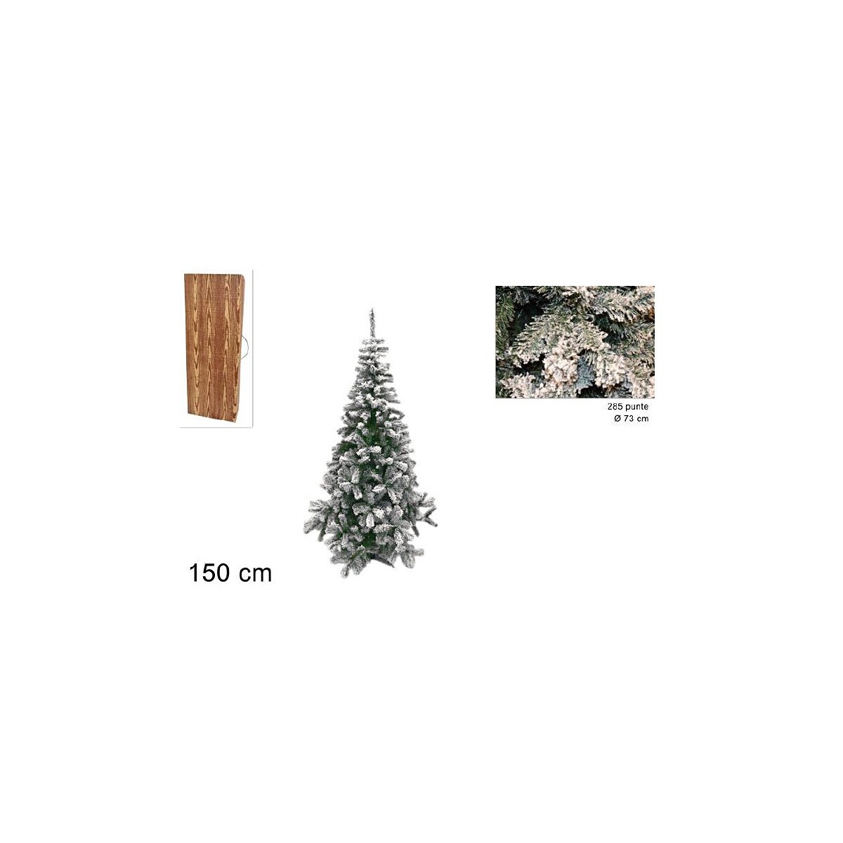Albero di Natale innevato Lapponia alto cm 150h con 258 punte. Il pino ha un'apertura ad ombrello e potrete arricchirlo con ulteriori addobbi presenti nell'omonima categoria. Prodotto realizzato in pvc.