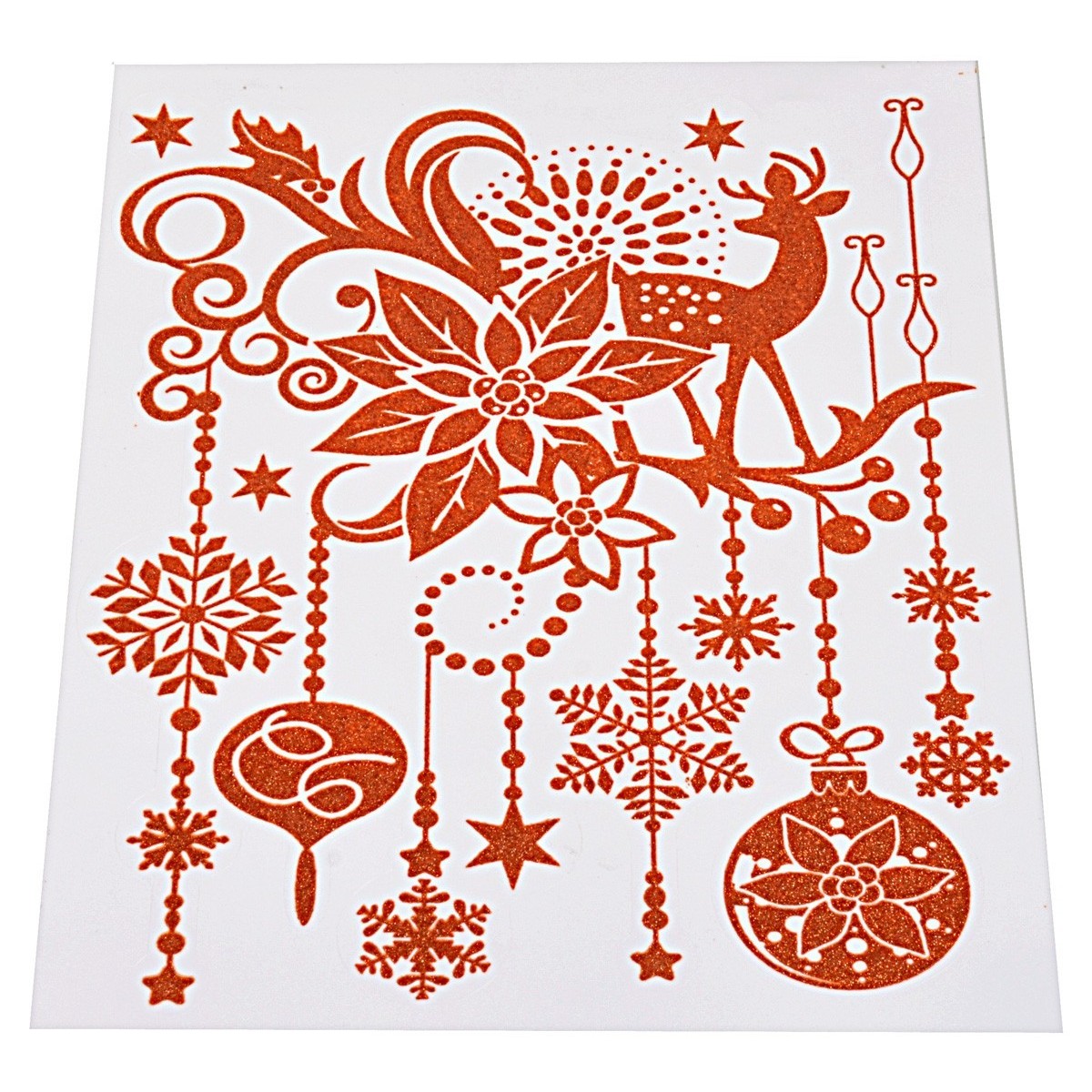 Vetrofania rossa glitterata con palline di Natale cm 31x44h