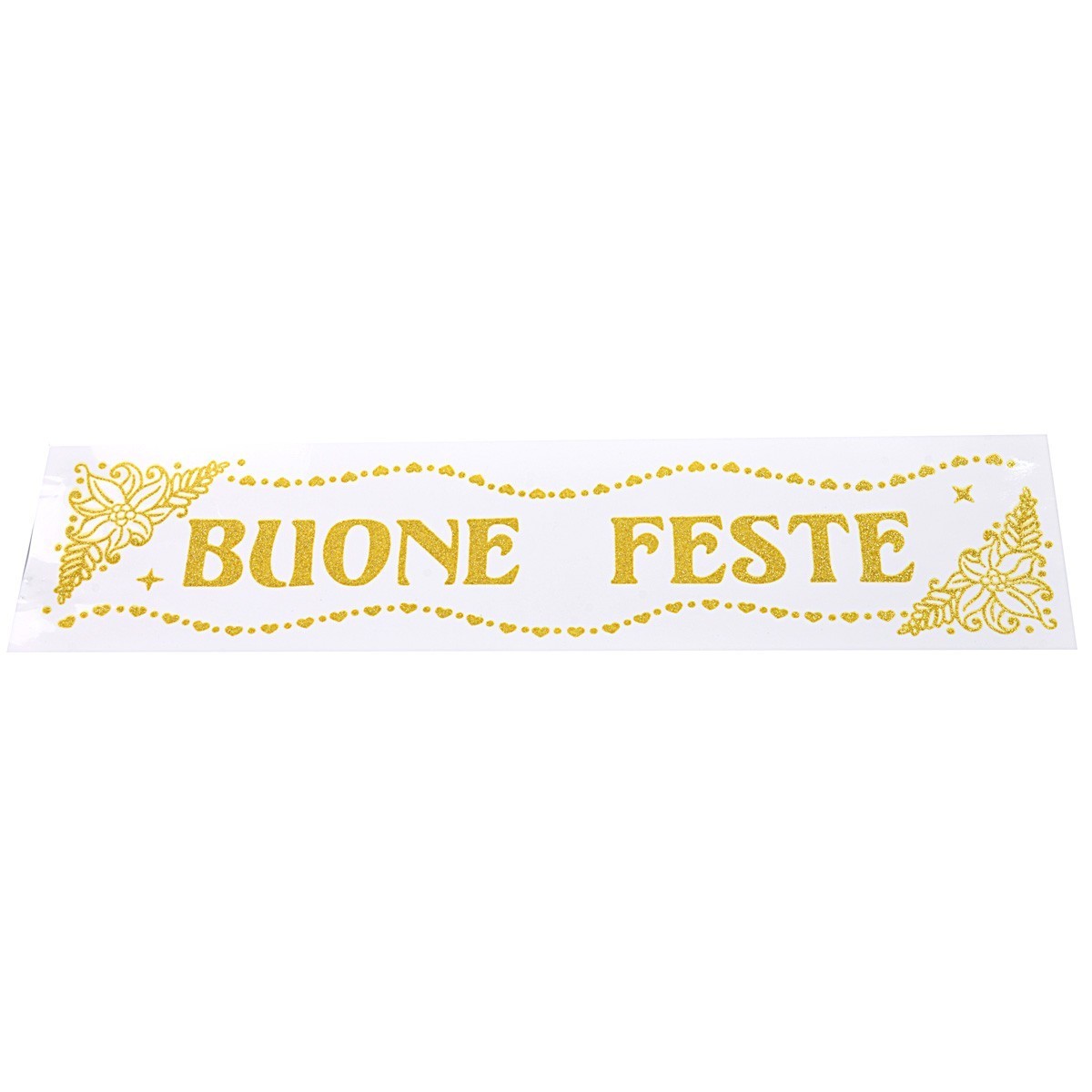 Vetrofania glitterata oro "Buone Feste" cm 16x61