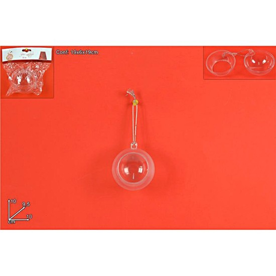 Sfera natalizia trasparente e apribile con un lato forato ø 10 cm