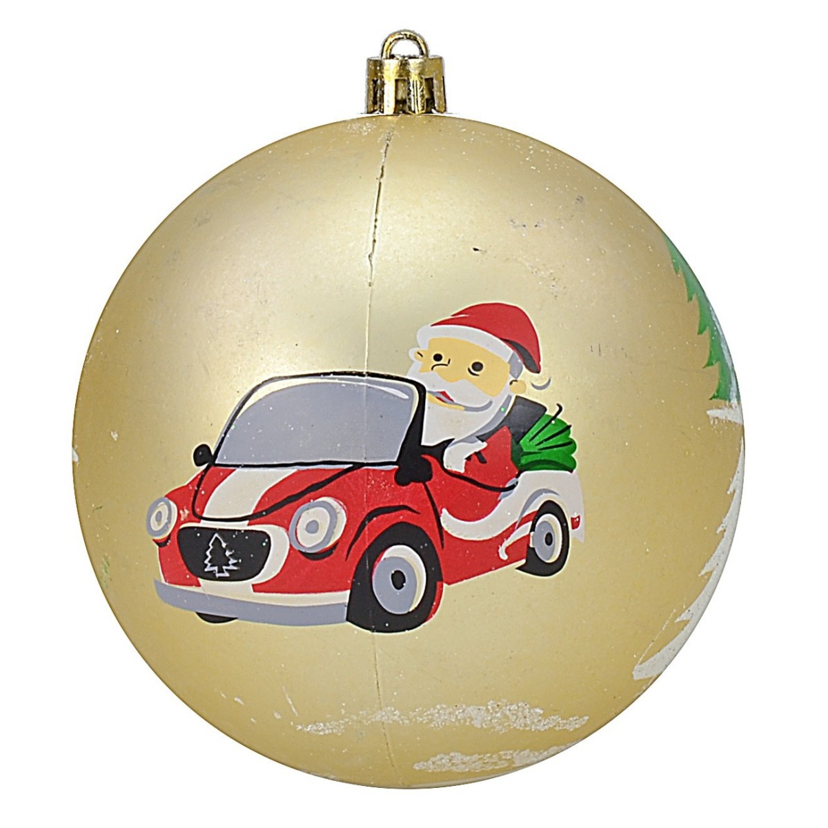 Set composto da 6 sfere colore oro nella versione lucida e satinata, con raffigurato Babbo Natale alla guida di una macchinina tra pini innevati dal diametro di 10 cm per albero di Natale. Nel nostro shop online sono disponibili palline dello stesso modello in altre misure.