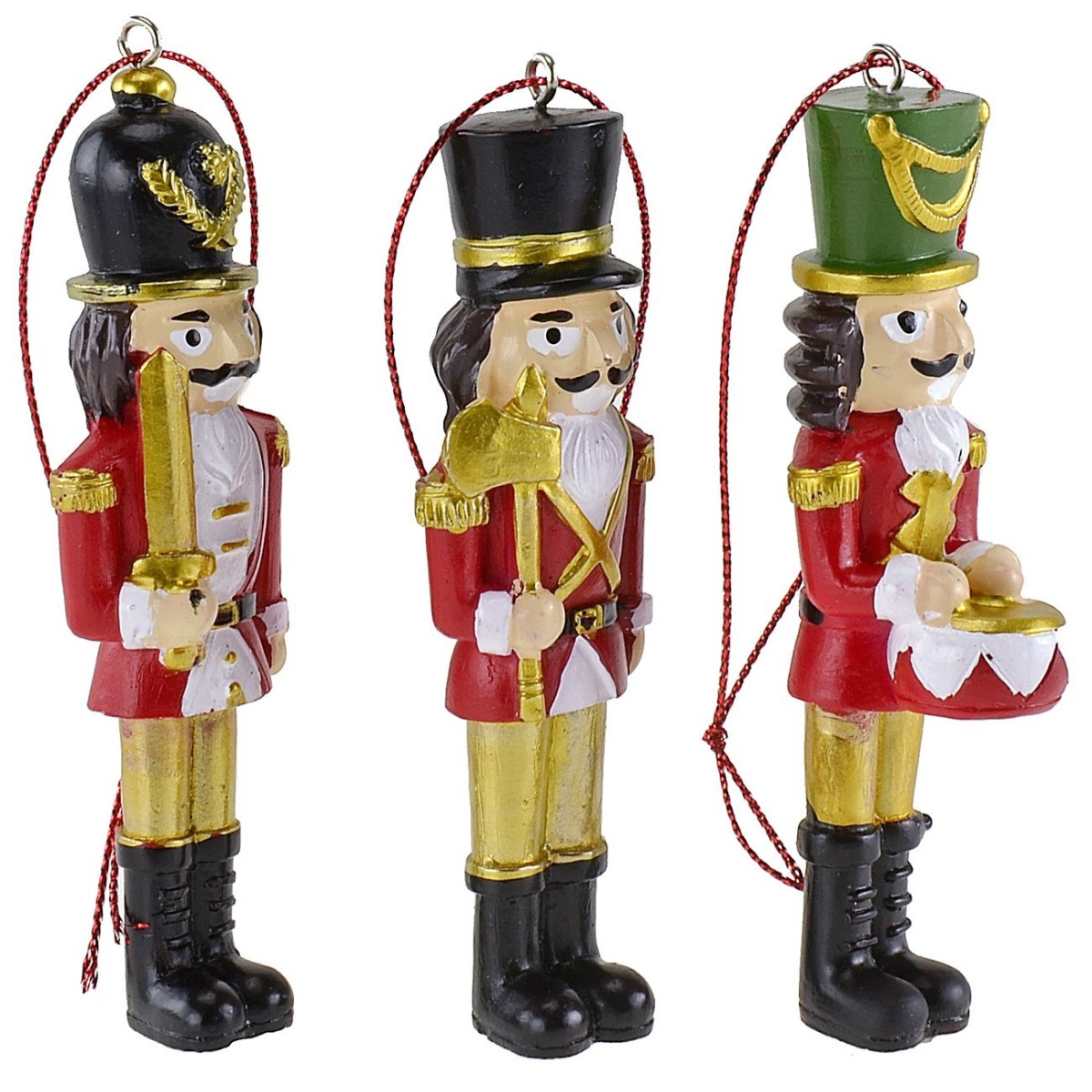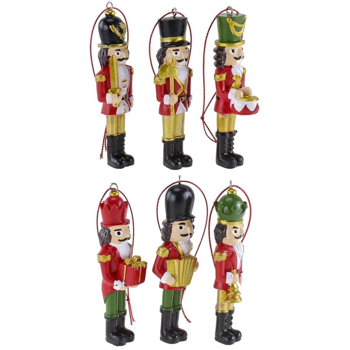 Confezione di 6 soldatini schiaccianoci in resina da appendere su alberi di natale.