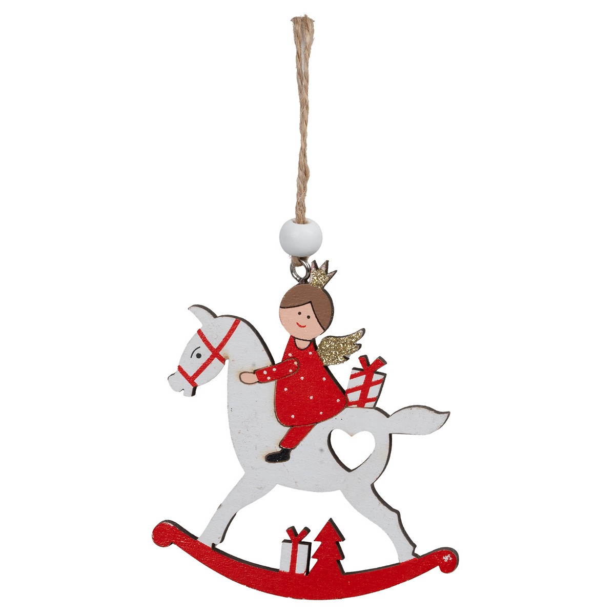 Set due cavalli bianchi in legno ideali per addobbare l'albero di natale.