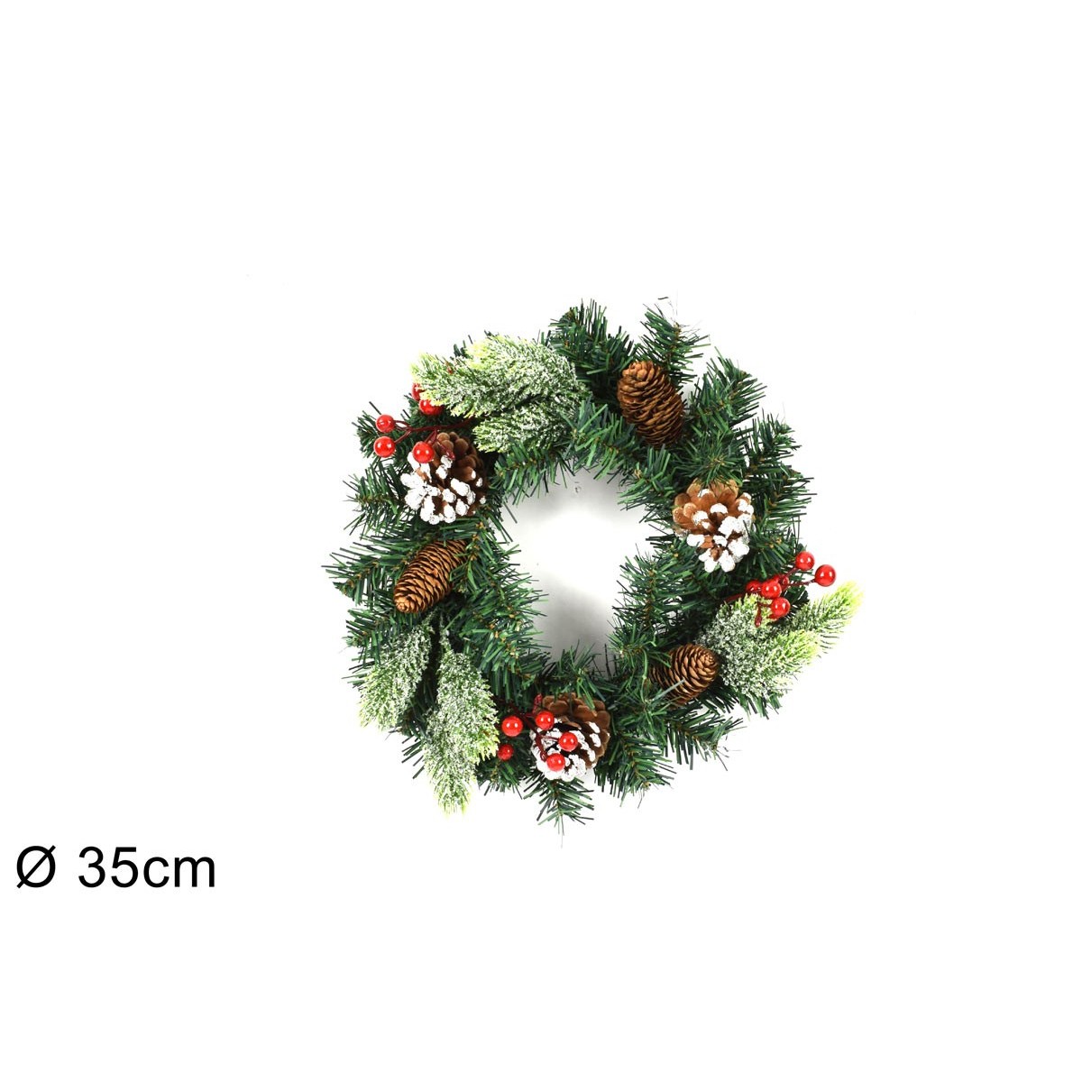 Dietro porta decorato con bacche e pigne, il diametro esterno misura 35 cm. L'articolo è ideale per creare un'atmosfera natalizia nelle vostre abitazioni.