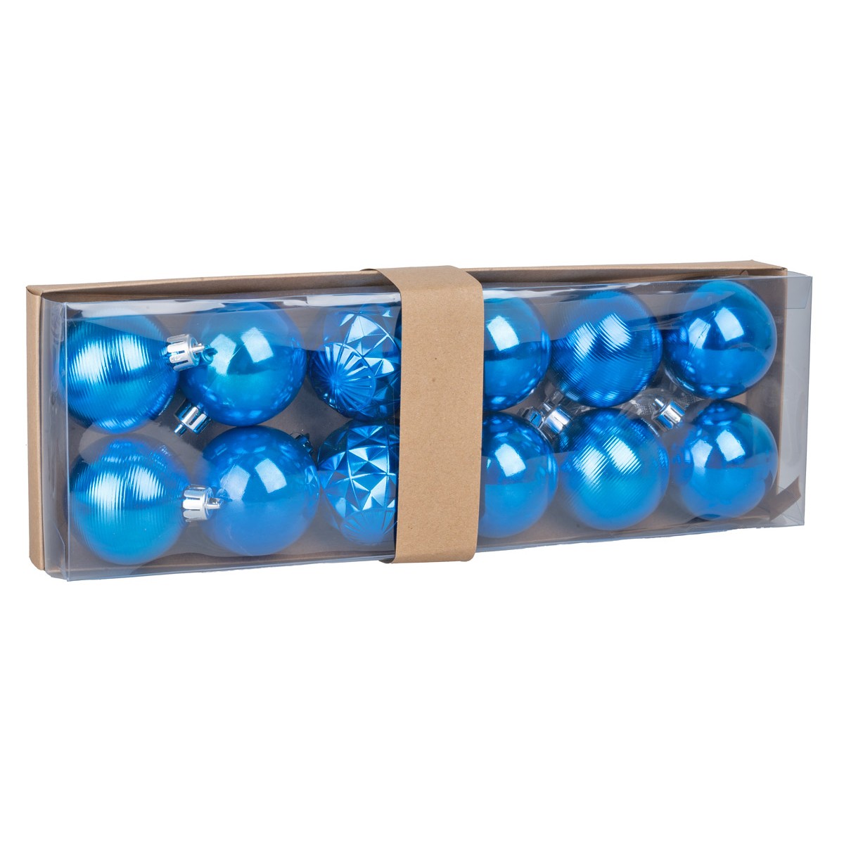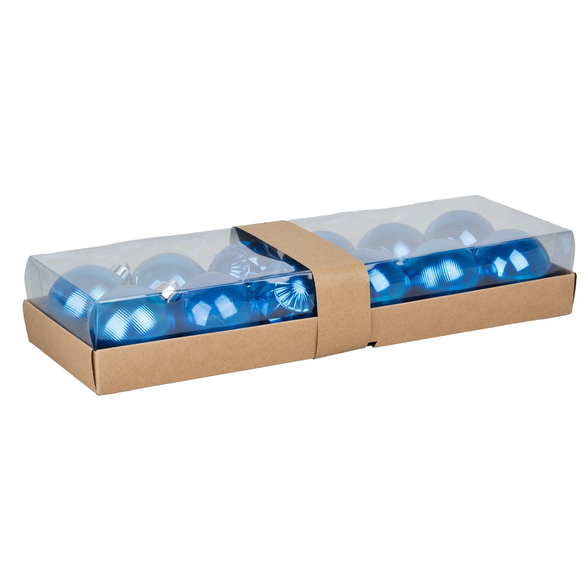 Questa confezione presenta un set di 12 sfere natalizie di colore blu lucido. Sono incluse palline con diversi design, alcune probabilmente con effetti glitter e trasparenti. Se cerchi varietà di colori, nel nostro shop online potresti trovare modelli simili in altre tonalità.