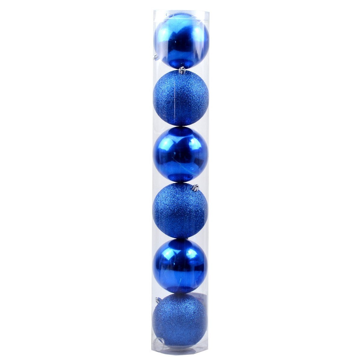 Set composto da 6 palline cm 10 per albero di natale, 3 pezzi sono di color blu glitterato e 3 pezzi blu metallizzato; il set è completo di laccetti per appendere le palline all'albero. Nel nostro shop online sono disponibili palline dello stesso modello in altre misure.