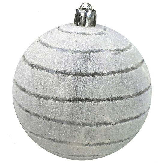 Pallina per albero di Natale 8 cm di color bianco glitterato con righe.Nel nostro shop online sono disponibili palline dello stesso modello in altre misure.