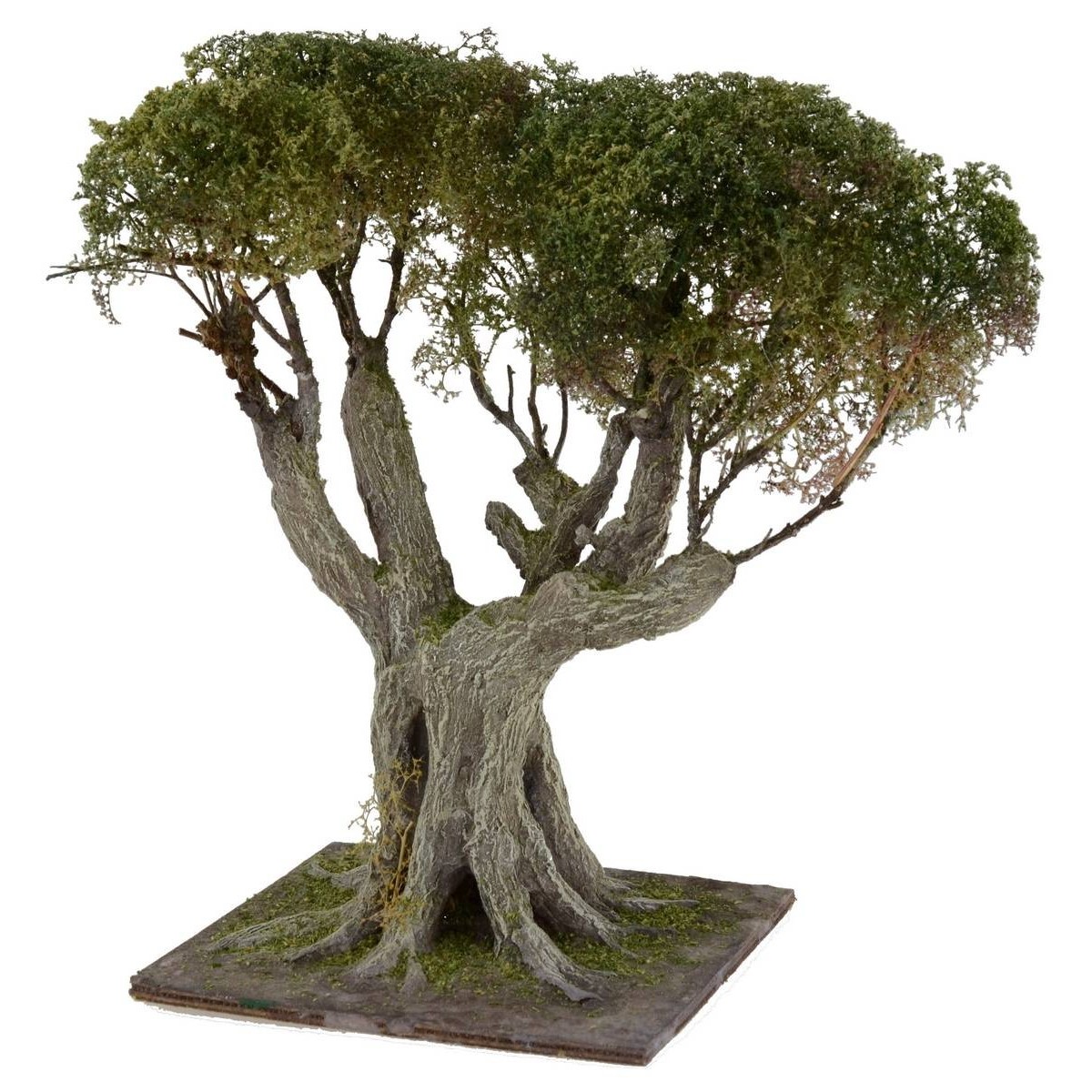 Ulivo per presepe e modellismo con fitta chioma verde di altezza 23 cm. L'albero si presenta ben rifinito nei dettagli: la chioma, infatti, è realizzata con veri ramoscelli di Teloxis Aristata, una pianta erbacea; mentre il tronco risulta visibilmente realistico. Prodotto realizzato interamente in Italia da sapienti mani artigiane.