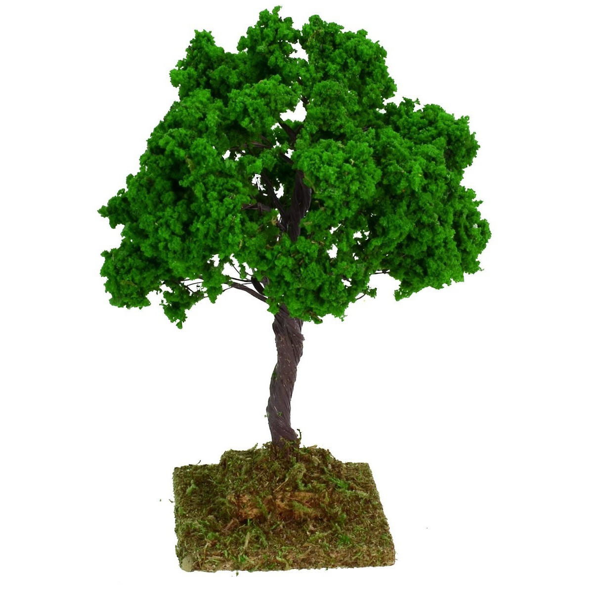 Albero con chioma verde per presepe e modellismo con base in sughero.