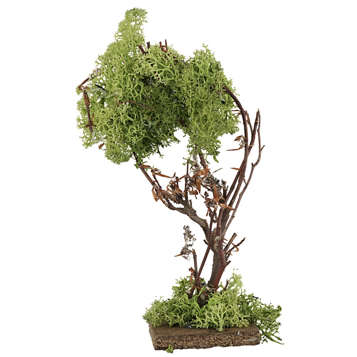 Albero verde con base quadrata in legno, adatta per modellismo per presepe. La pianta alta 18,5 cm è realizzata artigianalmente e prodotta in legno e lichene, è rifinita nei minimi dettagli, perfetta per rendere le ambientazioni ancora più immersive e realistiche.