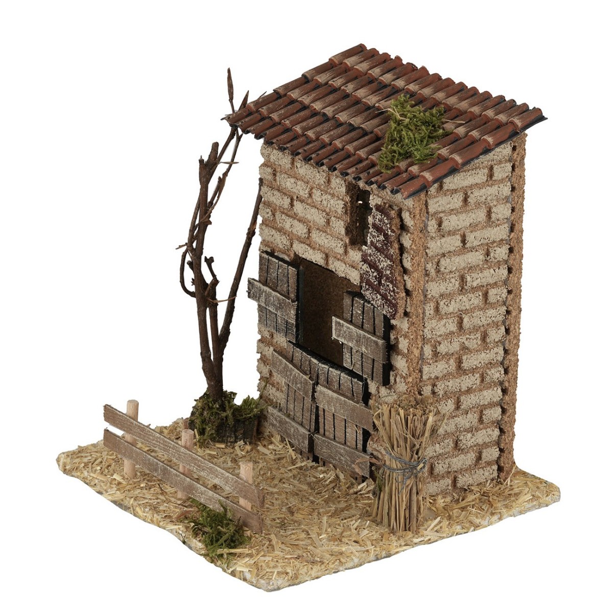 Stalla per animali, con albero e fieno, dotata di spazio esterno sul fronte, dove è possibile collocare gli animali. Si consiglia l'utilizzo con statue della serie 8-10 cm. Realizzato artigianalmente in Italia con legno, sughero e muschio. Il prodotto risulta perfetto per arricchire e rendere originale il presepe. Qui sotto la tabella, nei prodotti correlati, puoi trovare gli animali per completare la scenografia.
