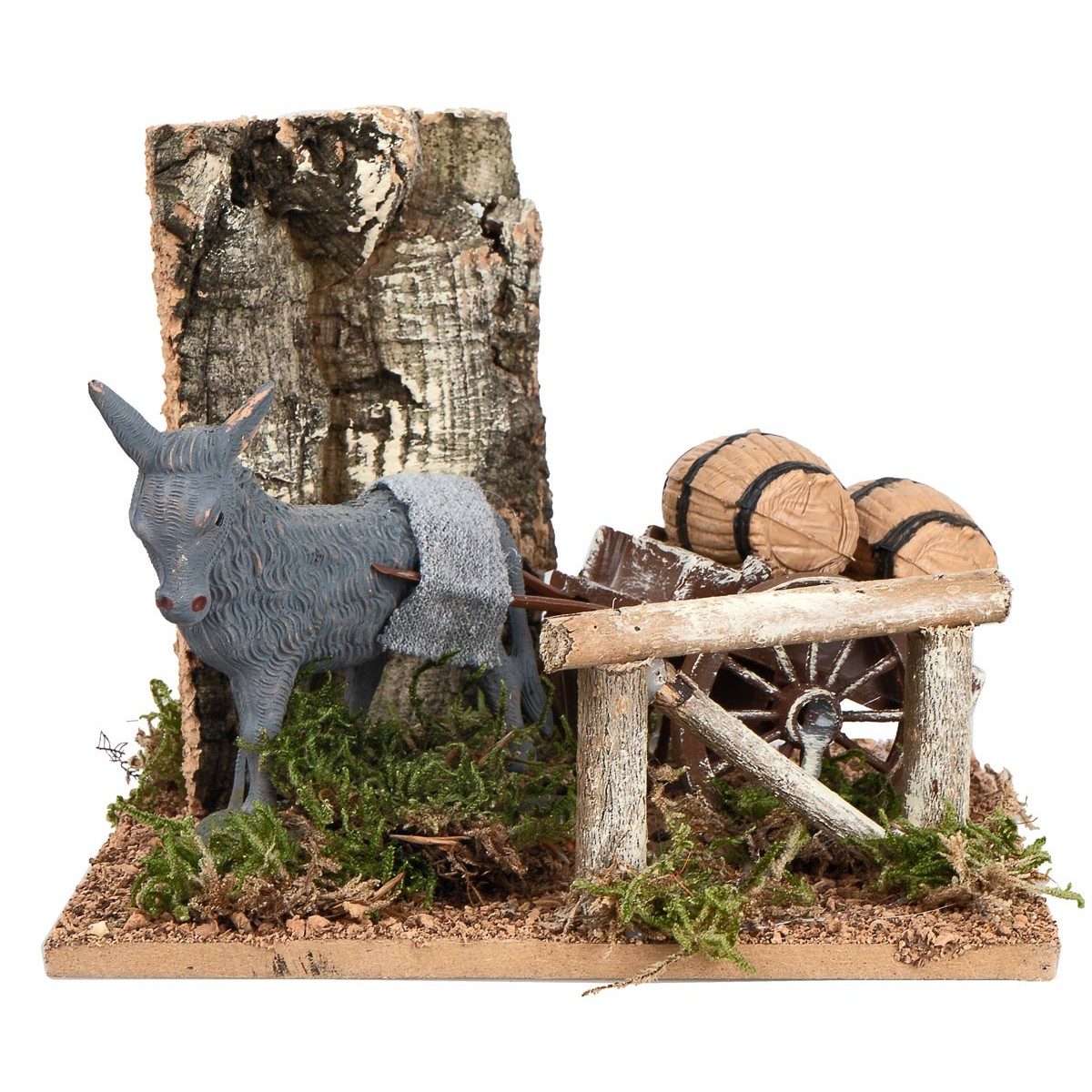 Asino con carro e botti consigliato per statuine di altezza 8-10 cm.