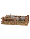 Ambientazione artigianale con asini, produzione Mondo Presepi consigliata per statue di altezza 3,5-4cm.