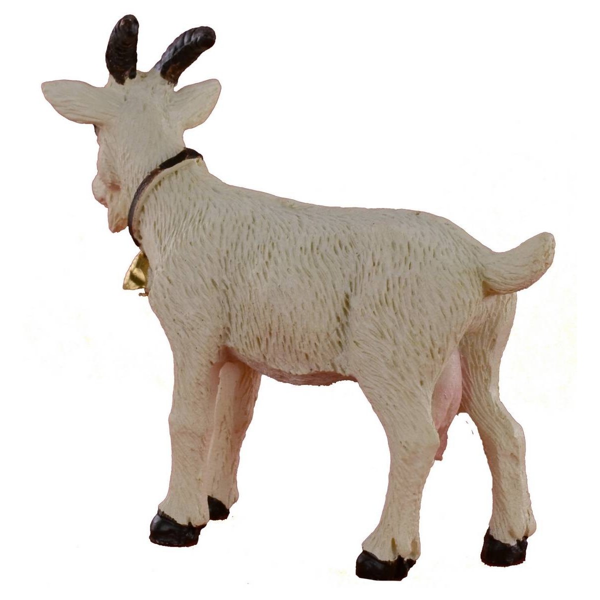 Capra a testa alta in resina, consigliata per statue di altezza 10-12 cm. Il prodotto è realizzato interamente in resina ed è ideale per presepi e diorami.