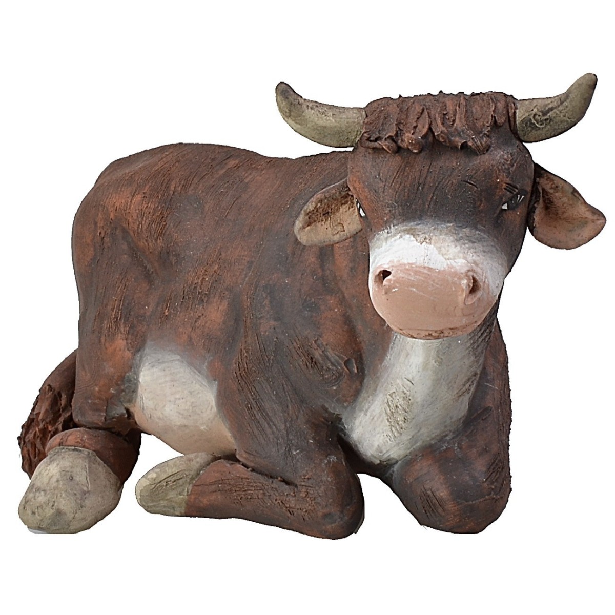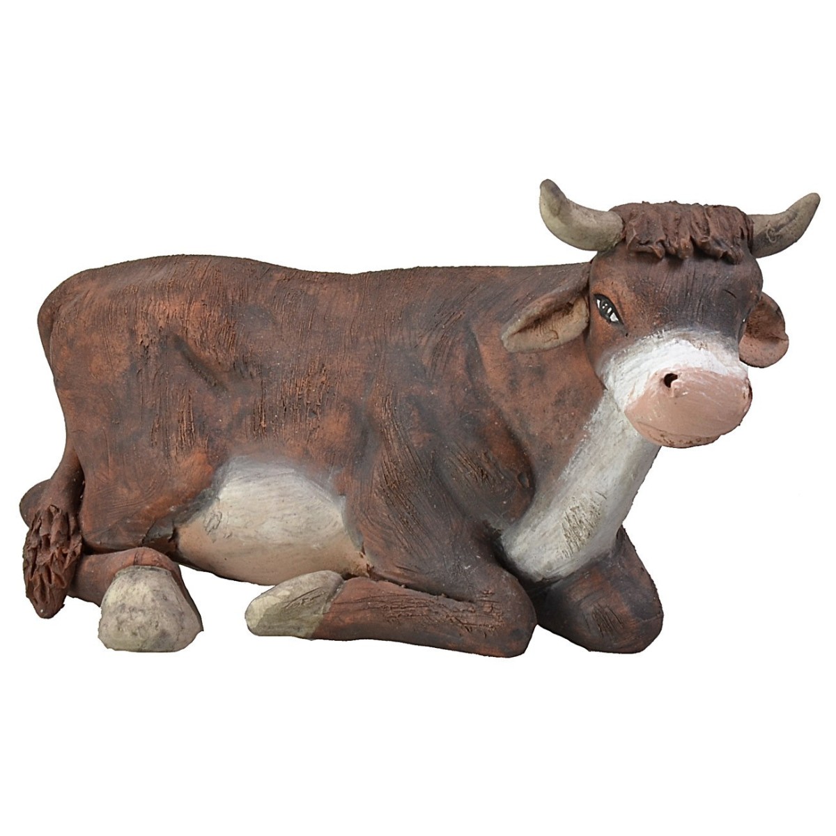 Bue seduto in terracotta realizzato artigianalmente da artisti italiani, è consigliato per statue di altezza cm 15. Nei prodotti correlati sotto la tabella è disponibile anche l'asino della medesima serie.