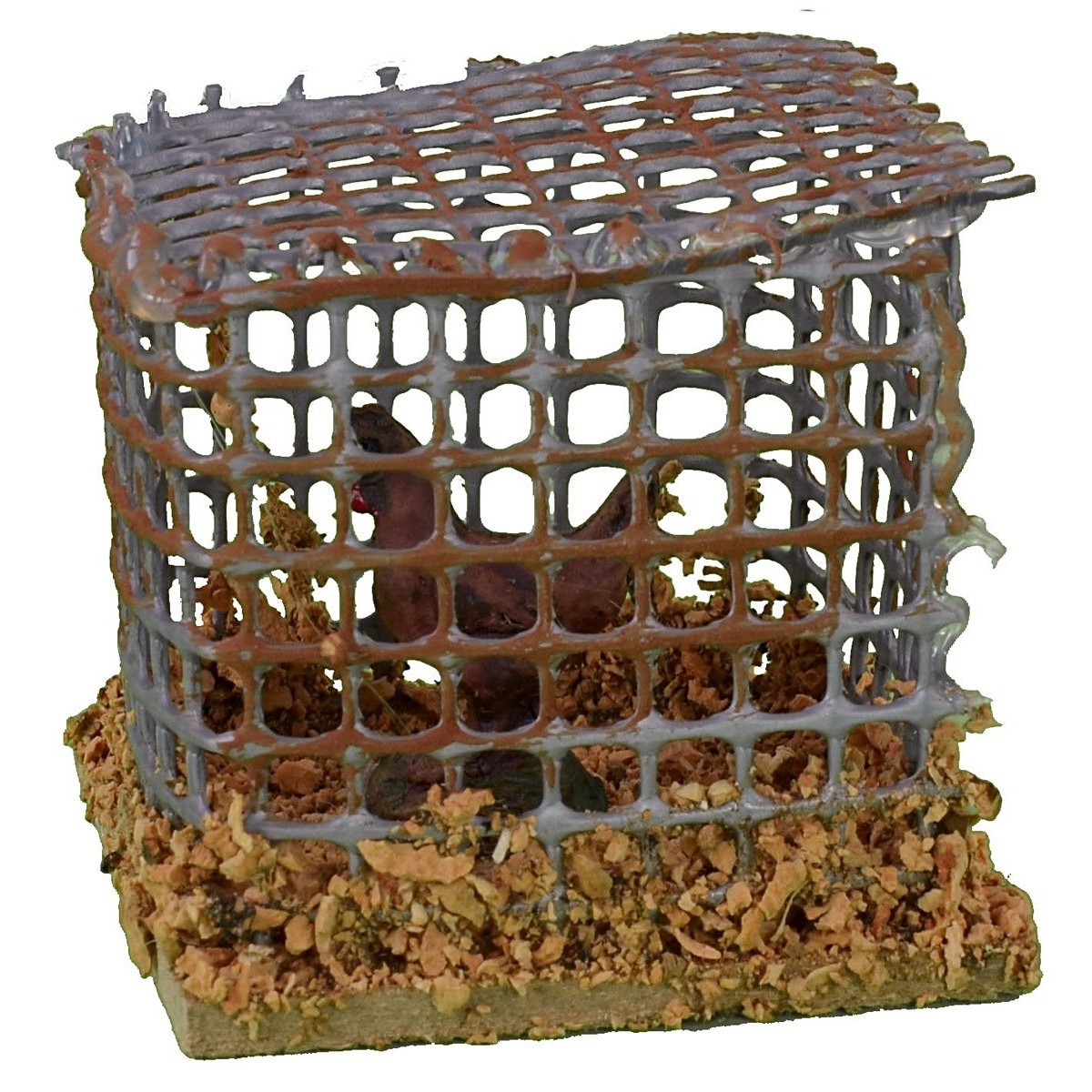 Gabbia in sughero e plastica con gallina scura consigliata per statuine di altezza 10 cm.