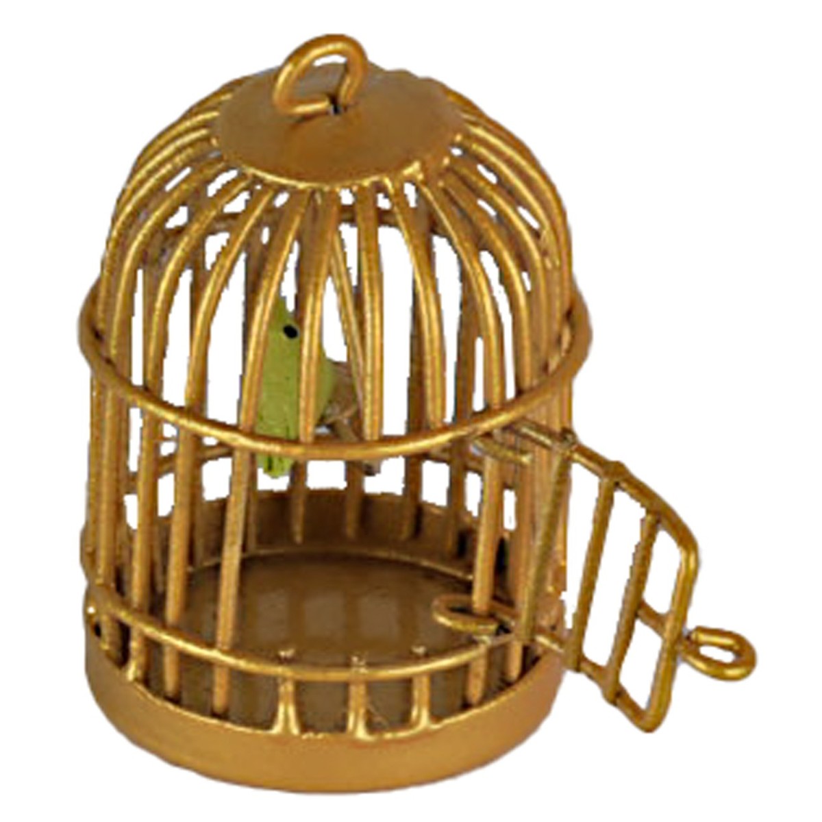 Gabbia con uccellino al suo interno, completa di finestrella apribile.