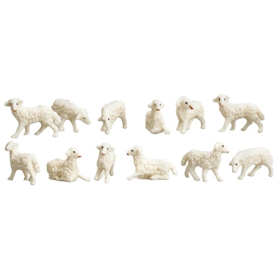 Set 12 pecore in PVC, consigliato per statuine di altezza 4-5 cm.