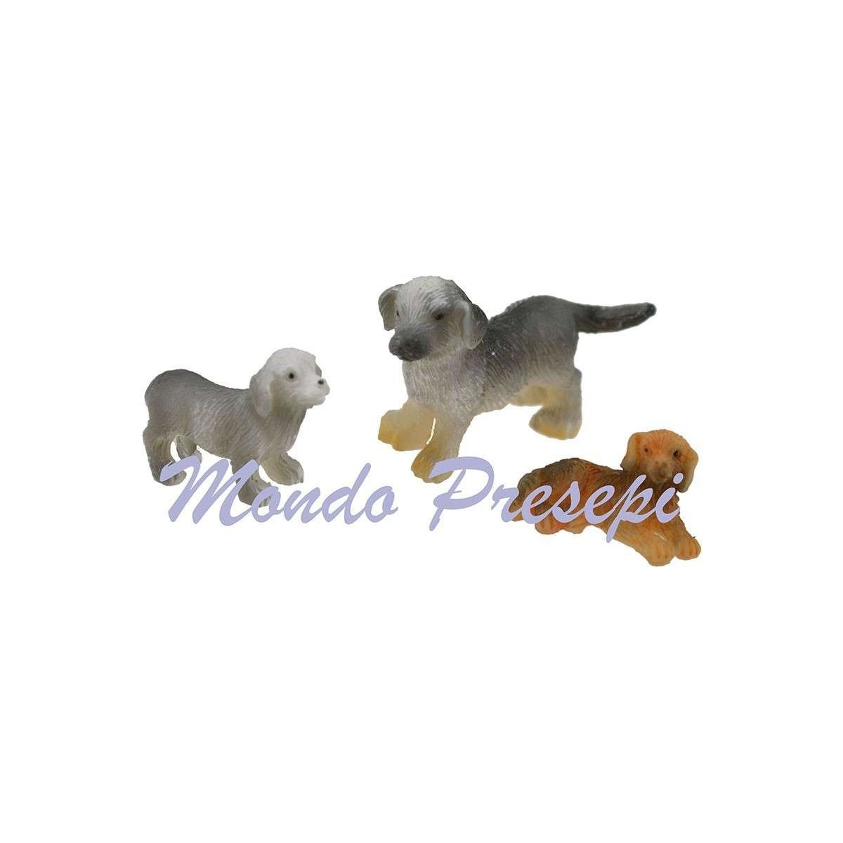 Set 3 cani in resina, mamma con cuccioli.