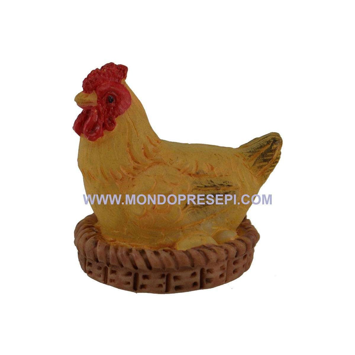 Gallina in resina nella cesta, consigliata per statue altezza da 20 a 24 cm.