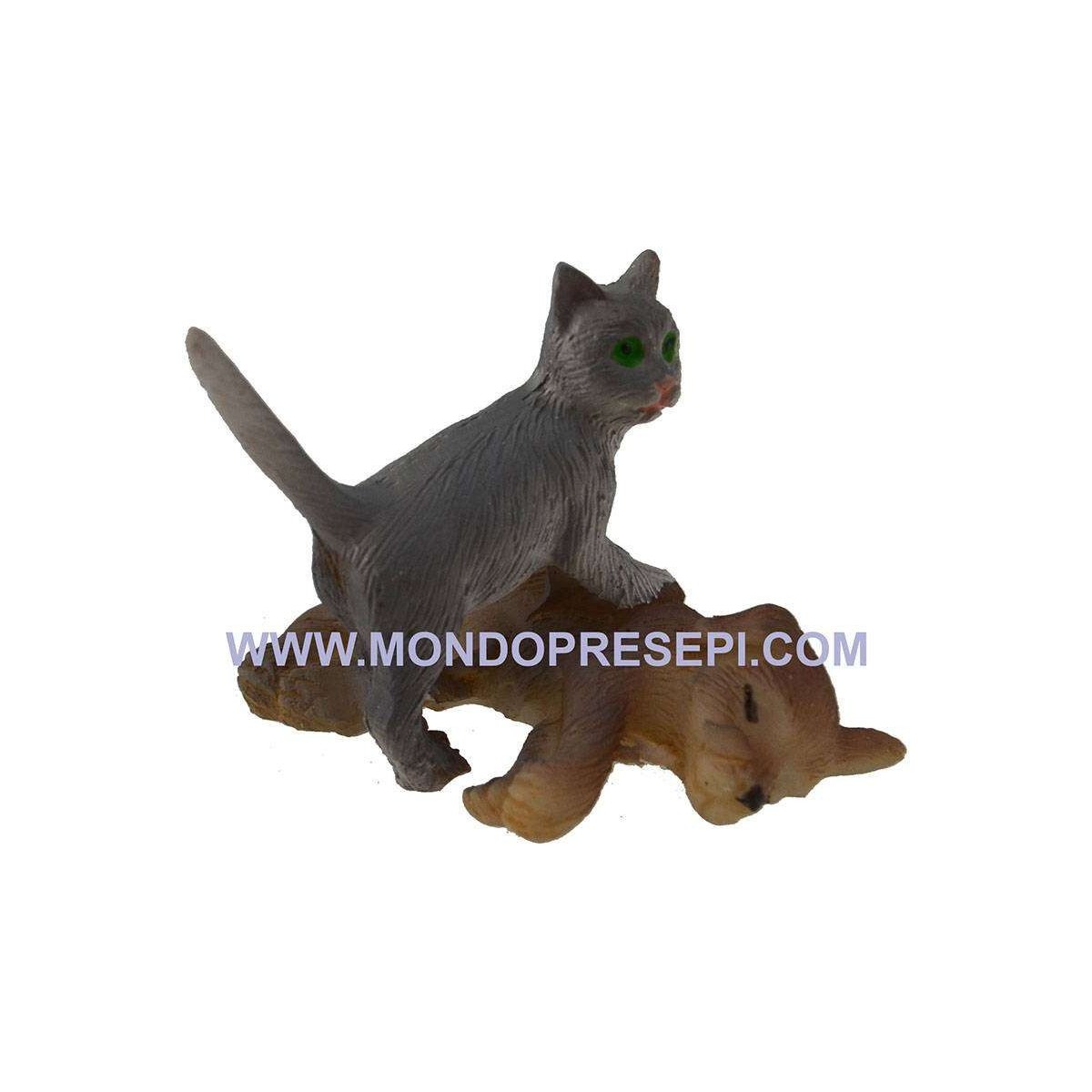 Cane e gatto che giocano, in resina consigliato per statue altezza 10 cm.