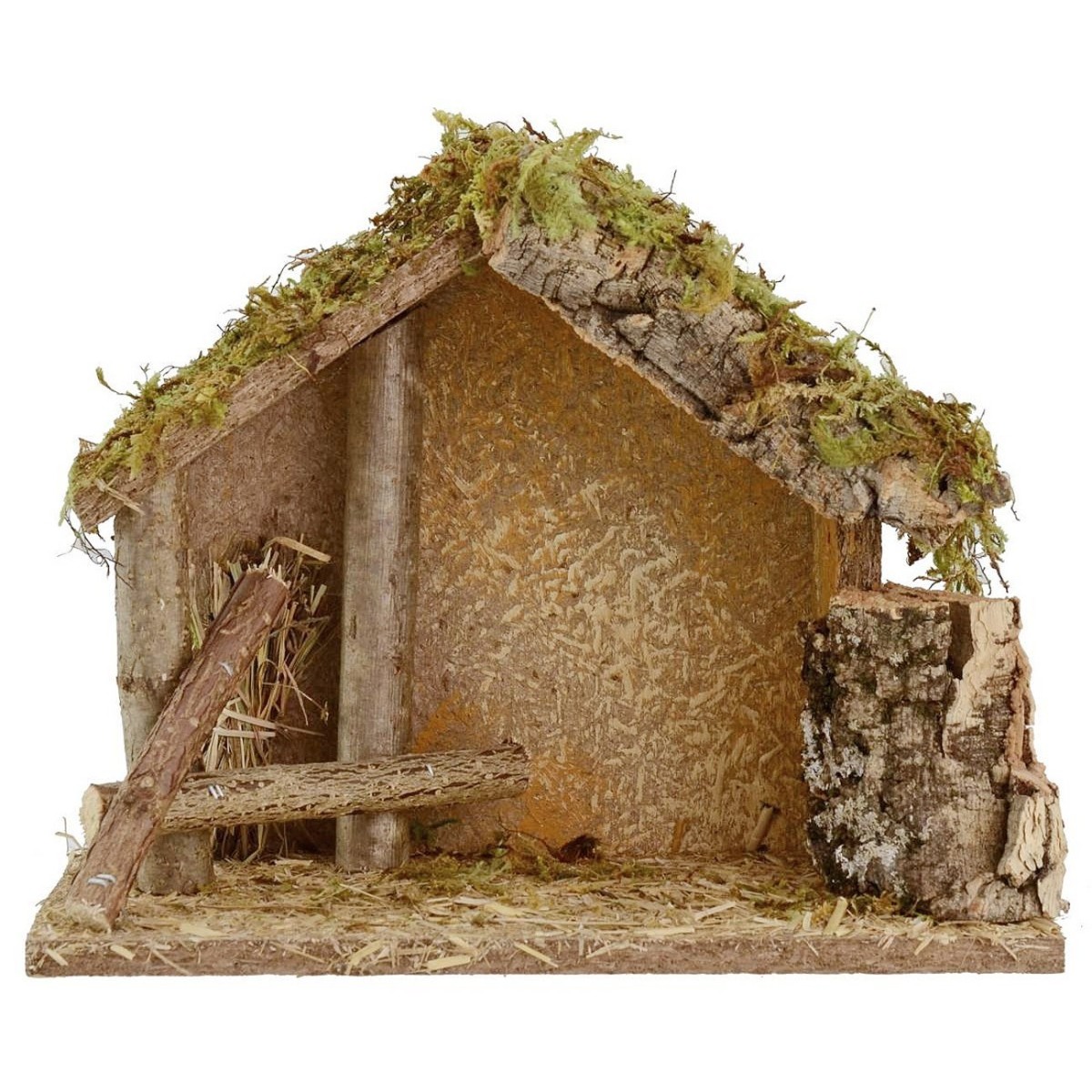 La capanna, luogo che accoglie la Natività, è il centro del presepe ed è realizzata artigianalmente in legno, sughero e muschio. L'interno della capanna è ulteriormente decorato con due colonne di legno che sorreggono il tetto e alla parete una fascina di fieno. Consigliamo di abbinare statue di altezza 8 cm, nei prodotti correlati è possibile trovare qualche suggerimento. Per dare maggior importanza alla capanna sarà possibile illuminarla, tutto il necessario alle vostre esigenze è già disponibile nella categoria “ILLUMINAZIONE”, ad esempio potreste inserire una catena di 10 o 20 luci led nella versione corrente o batterie; in alternativa una singola lampadina funzionante a corrente o delle lanterne /luci a bassa tensione.