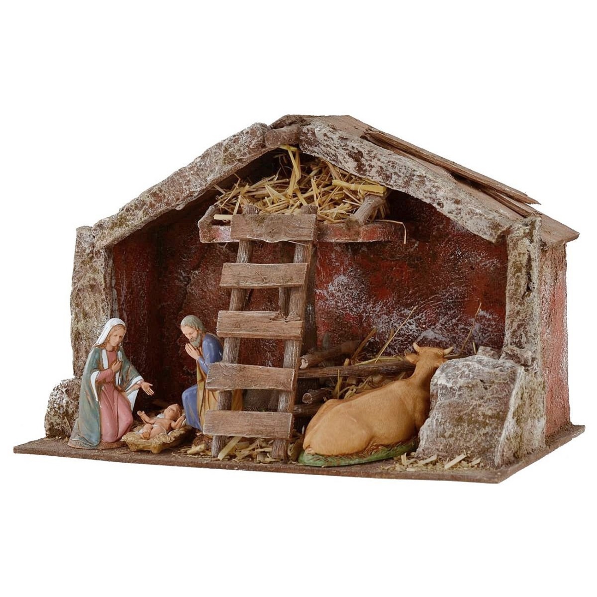Capanna con scala per raggiungere il fienile ben rifinita: la scenografia è caratterizzata da una capanna delineata da un tetto triangolare. All'interno, sulla destra, è presente una recinzione che contiene la paglia e, a sinistra, uno spazio dove è collocata la Natività da 10 cm di altezza. Al centro è, invece, presente una scala che permette di raggiungere il fienile colmo di paglia soprastante. Tutt'intorno, nella scena, è presente della paglia. La capanna è realizzata interamente in Italia da sapienti mani artigiane utilizzando il polistirene, legno e sughero.