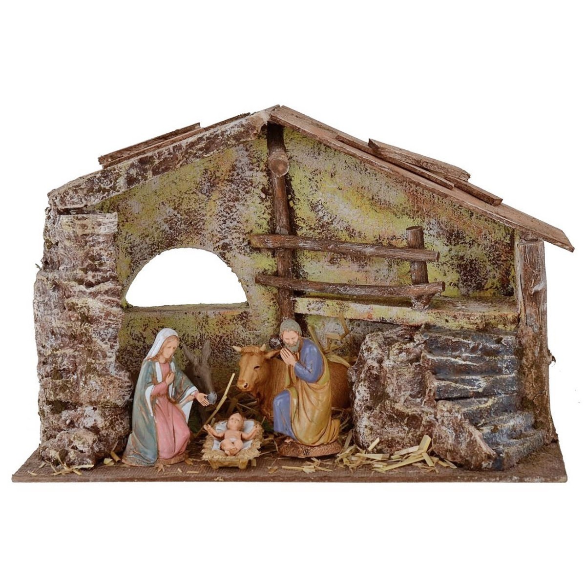Capanna completa di Natività Landi 10 cm con scalinata e