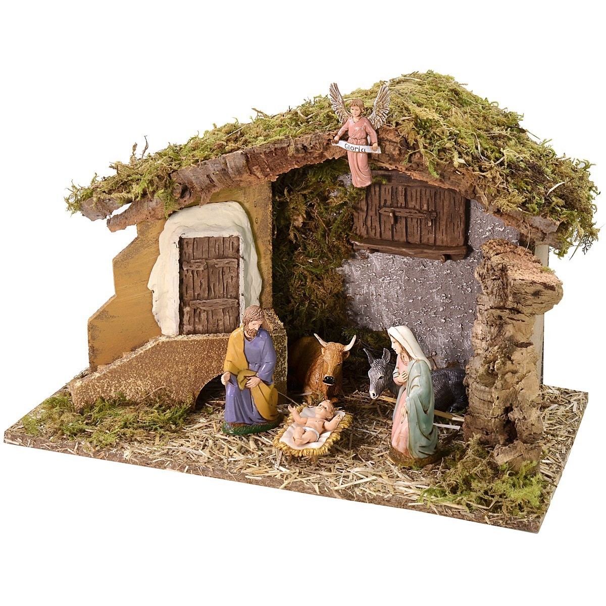 Capanna completa di Natività 6 soggetti serie 12 cm Landi Moranduzzo con angelo.