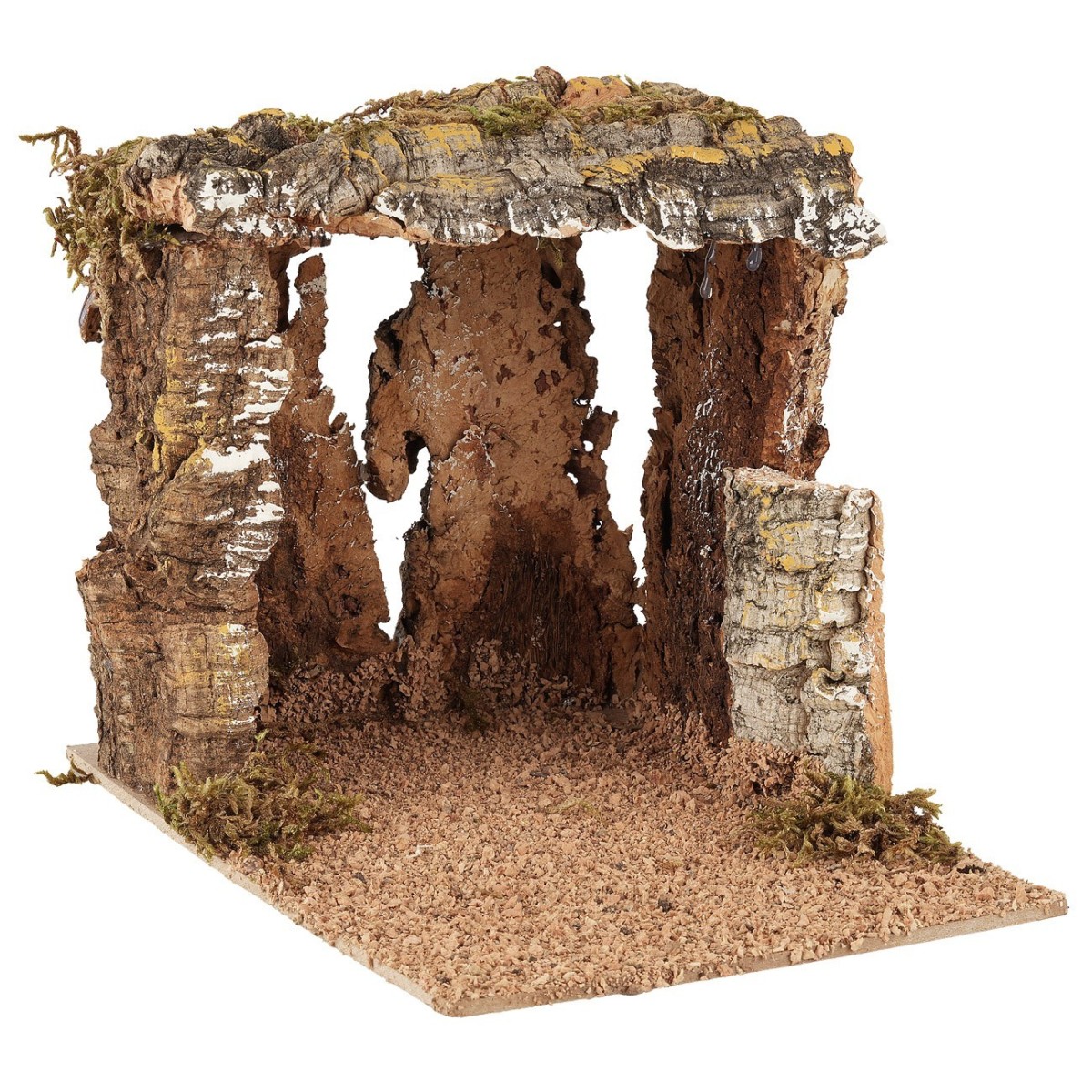 Grotta per presepe in corteccia di sughero, legno e muschio. L'articolo è realizzato artigianalmente in Italia ed è consigliato per statue di altezza 6-6,5 cm.