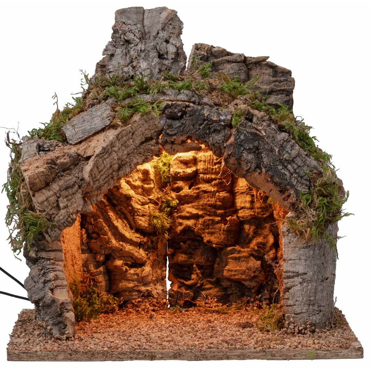 Consigliata per statuine di altezza 10 cm, è caratterizzata da una forma tonda e rivestita con pezzi di corteccia in sughero e muschio, creando un effetto realistico e suggestivo.