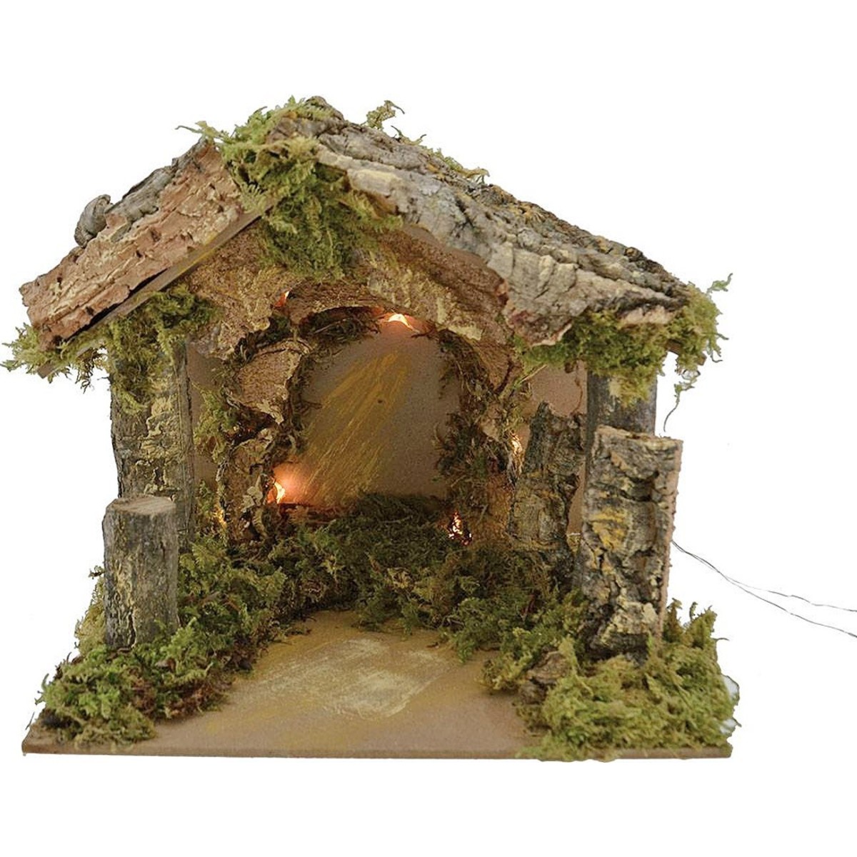 Capanna in legno, sughero e muschio con luci a led bianco caldo, funzionanti a pile (3xAA non incluse).