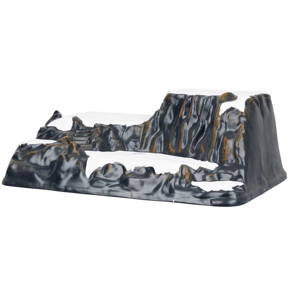 Scenario di montagna innevato su due livelli, realizzato in plastica, rappresenta un'ambientazione montana invernale. Questo paesaggio è adatto per completare il presepe o il villaggio natalizio, offrendo profondità e un elemento invernale alle decorazioni.