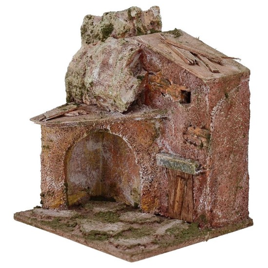 Cascina di montagna per il Presepe classico popolare, struttura a più livelli incastonata nella roccia; a sinistra un grande portico con arco a tutto sesto che può esser decorato a piacimento con le minuterie disponibili nell'apposita categoria e destra l' ingresso a piano terra con porticina in legno chiusa e finestrella al piano superiore. Il tetto è decorato con alcune vecchie travi di legno. Questa ambientazione è stata creata da artigiani italiani per il Presepe classico popolare in polistirene e legno, ed è adatta a statue di altezza cm 4 e paesaggi in lontananza.
