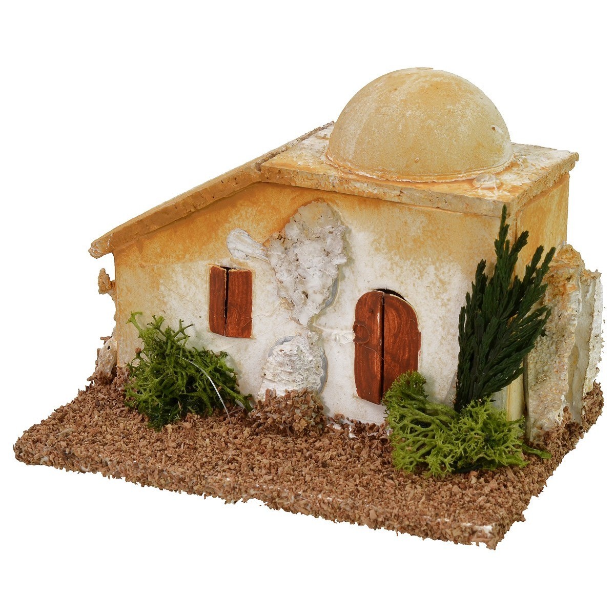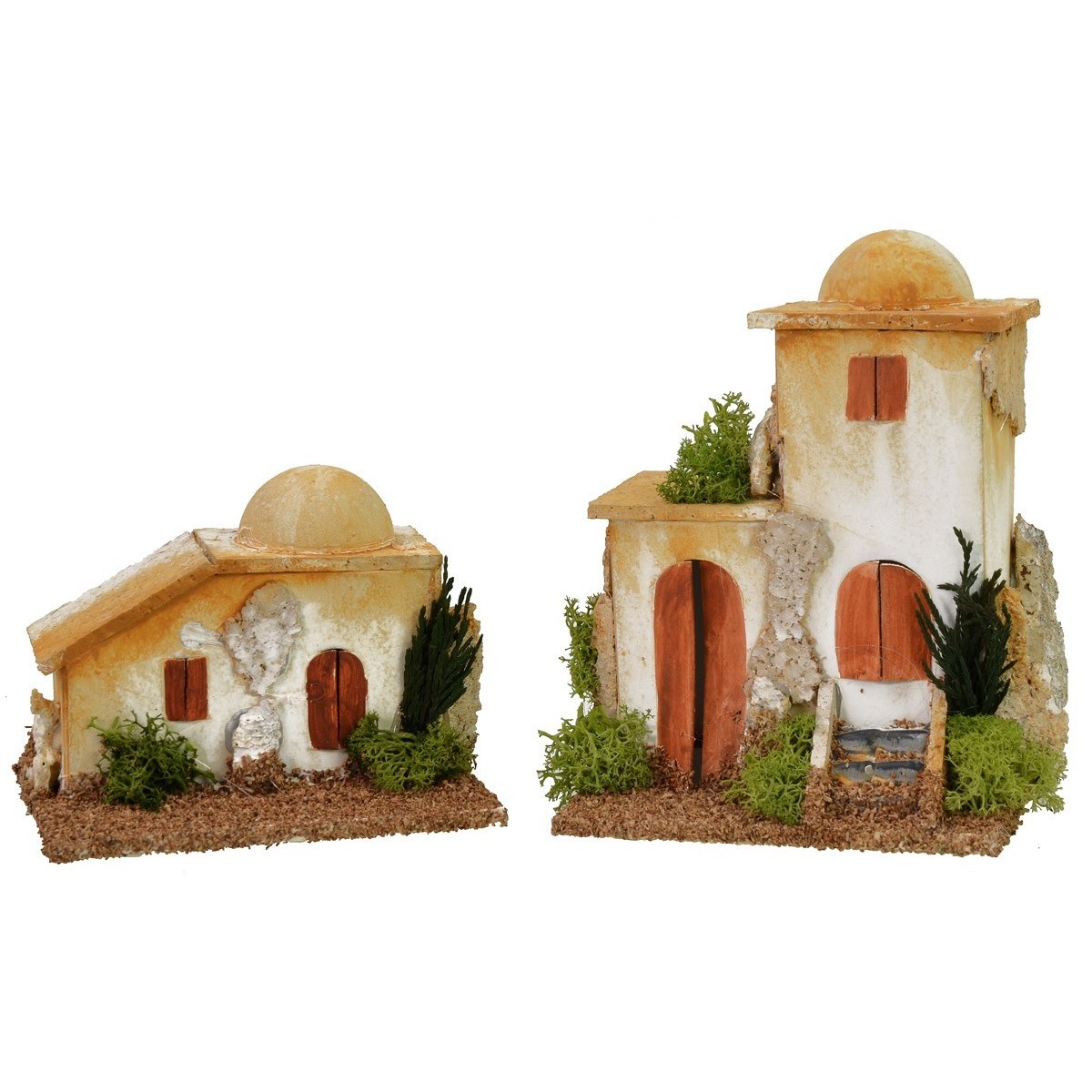 Coppia di minareti uno caratterizzato da una scalinata d'accesso e che porta a due piani, mentre l'altro ha il tipico tetto quadrato con cupola. Questo prodotto è stato realizzato da sapienti artigiani italiani per il Presepe in stile arabo; la struttura è adatta a statue di dimensione 5-6 cm.