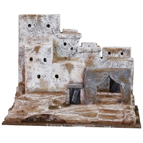 Borgo di case bianche a più piani in stile palestinese, si accede grazie ad un grande arco e le abitazioni sono caratterizzate da piccole finestre circolari e dai tipici tetti piani. Il prodotto è stato realizzato in Italia da sapienti mani artigiane con legno e polistirene, date le dimensioni è consigliato un utilizzo in lontananza per enfatizzare l'effetto prospettico nel presepe.