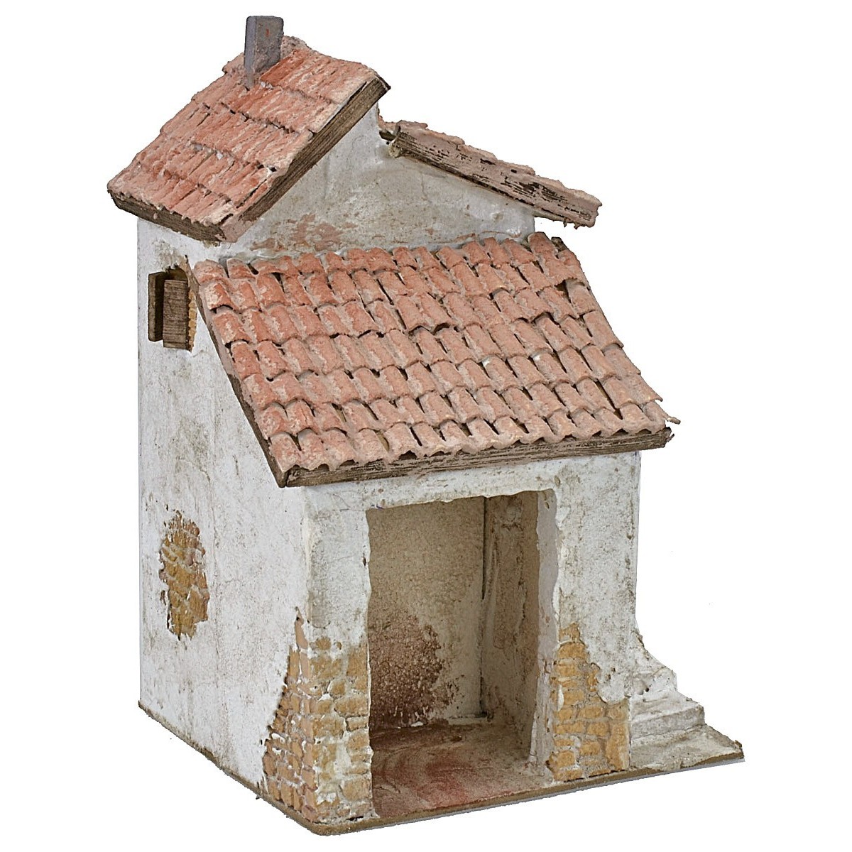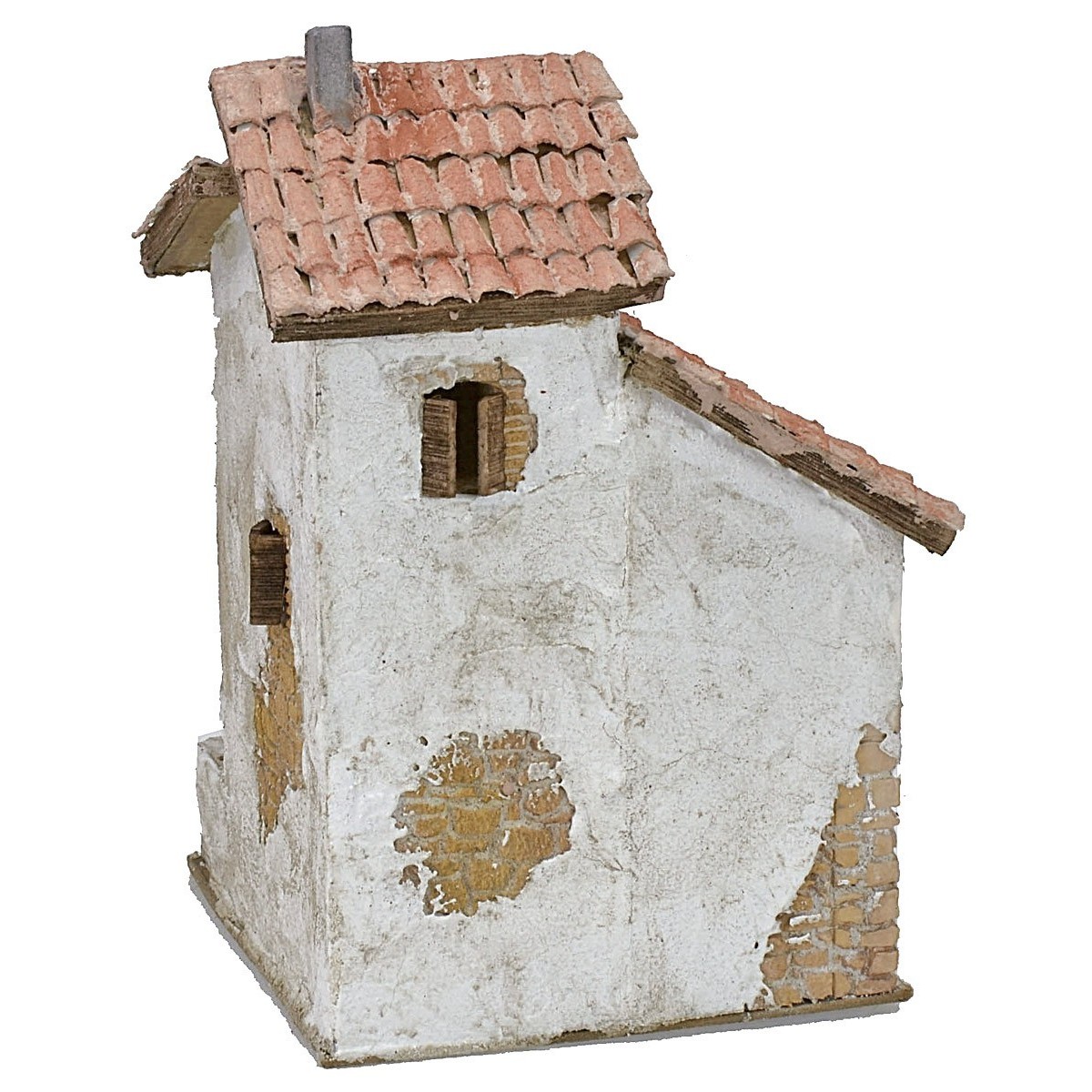 Casa rustica con piano rialzato accessibile tramite scala esterna, sul lato un'apertura che può essere adibita, per esempio, a deposito per attrezzi o allestita a piacimento con le minuterie presenti nella sezione dedicata. La particolarità di questa abitazione sono le pareti con stucco bianco da cui si intravedono dei mattoni e nei prodotti correlati sono disponibili altri pezzi della serie per poter creare un borgo nel presepe. Il prodotto è consigliato per statuine di altezza 8-10 cm ed è stato realizzato in Italia interamente a mano con polistirene, stucco e legno. Per valorizzare ulteriormente questa casa è possibile illuminarla praticando un foro sul retro e inserendo apposite luci o lanterne disponibili nella categoria dedicata 'illuminazione presepe'.