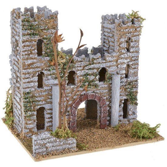 Scenografia per presepe che riproduce realisticamente un castello ghibellino con due torri laterali e grande arco centrale che ne permette l'accesso. L'articolo è adatto a statue per presepe di altezza 3,5 cm Landi Moranduzzo ed è stato prodotto artigianalmente in Italia con legno, sughero e muschio. Si precisa che l' immagine ha valore puramente dimostrativo e le statuine non sono comprese, ma possono essere acquistate separatamente sul nostro sito.