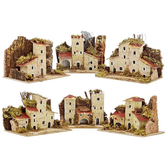 Set 6 casette per presepe, ideale per realizzare il paesaggio in lontananza. Le case si possono illuminare forando il retro per inserire la vostra luce.
