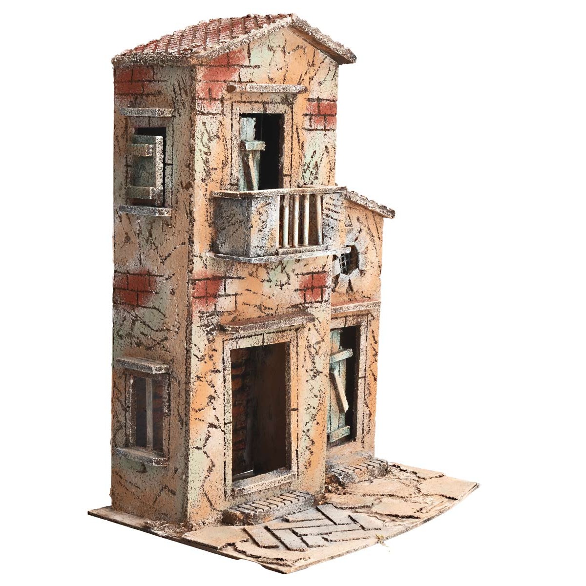 Casa napoletana a due piani con balcone e tetto spiovente, consigliata per statuine di altezza da 8 a 9 cm.